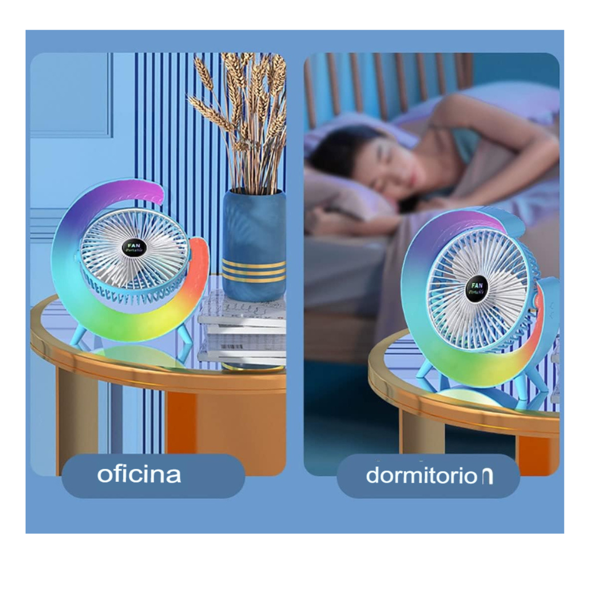 Experimenta la frescura, la comodidad en cualquier momento y en cualquier lugar con nuestro Ventilador Multifuncional de Escritorio con Luz Ambiental. Diseñado para brindar una experiencia de ventilación cómoda, este ventilador portátil se adapta perfectamente a diversas ocasiones, desde el hogar o la oficina.